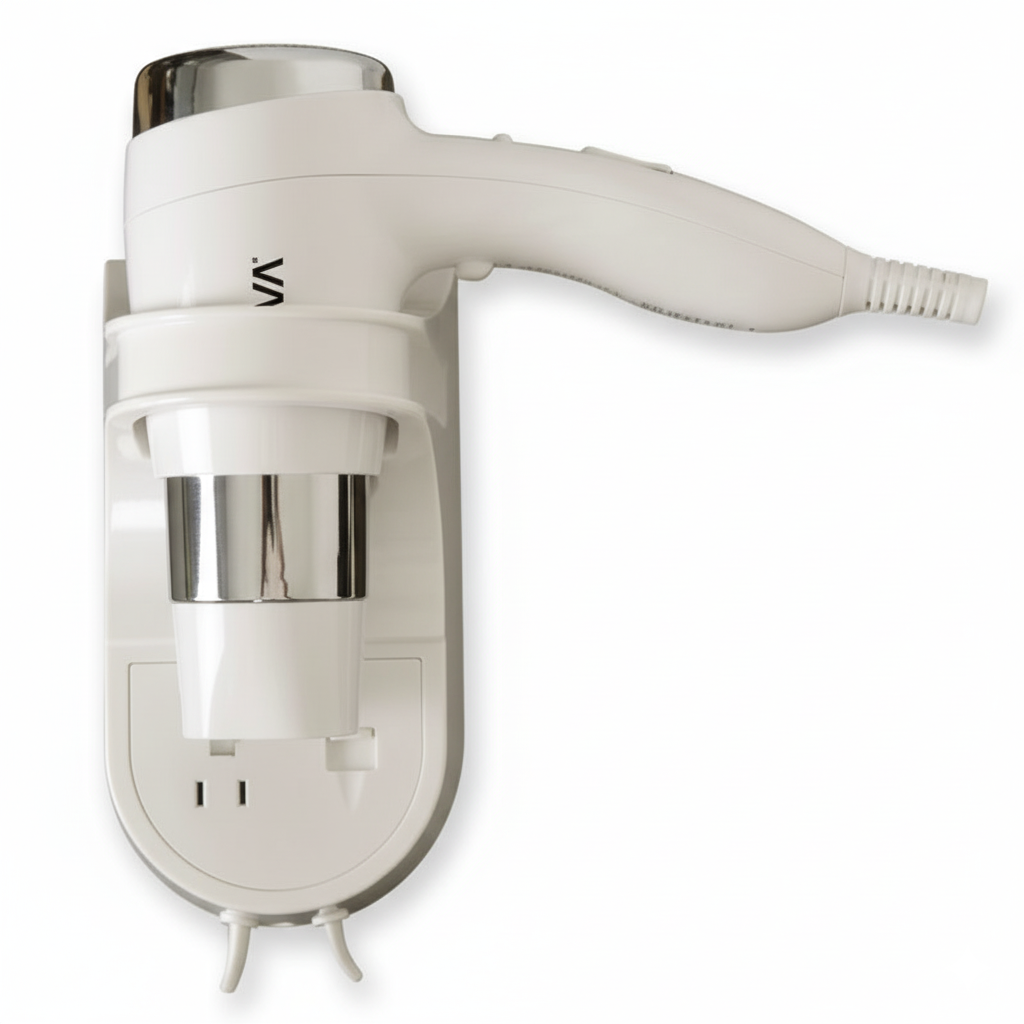 • Elegant wall-mounted hair dryer suitable for hotels and guest rooms.